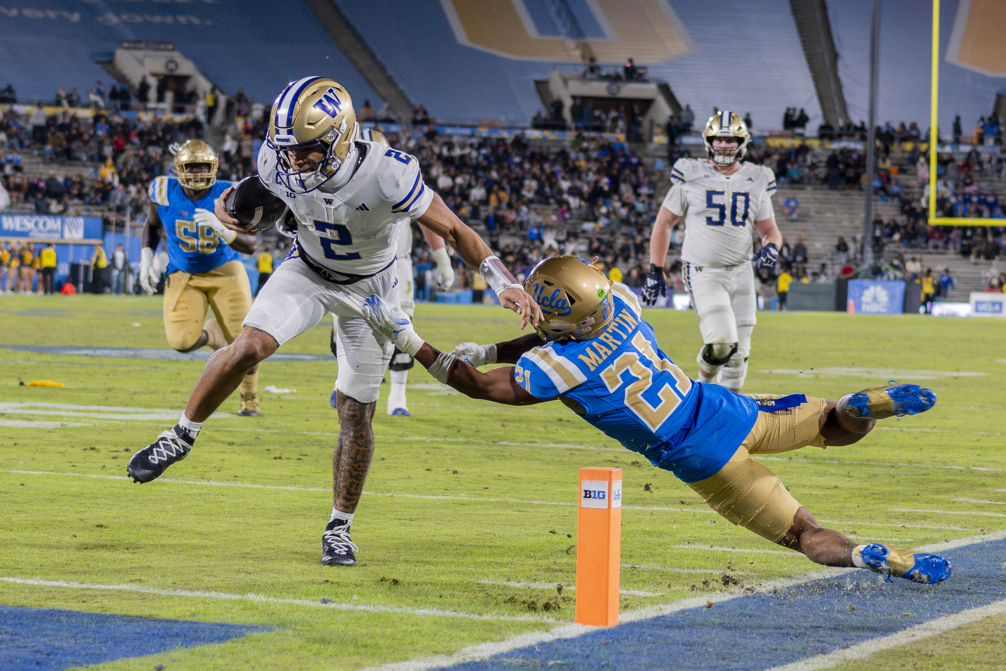 It was a storybook evening at the Rose Bowl: cotton candy clouds hanging over the San Gabriel Mountains, fans tailgating on the grass outside the stadium and a matchup between two old foes.